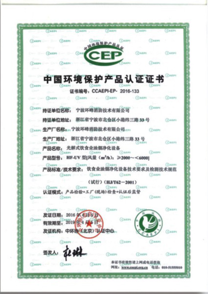 中國環(huán)境保護(hù)產(chǎn)品認(rèn)證證書